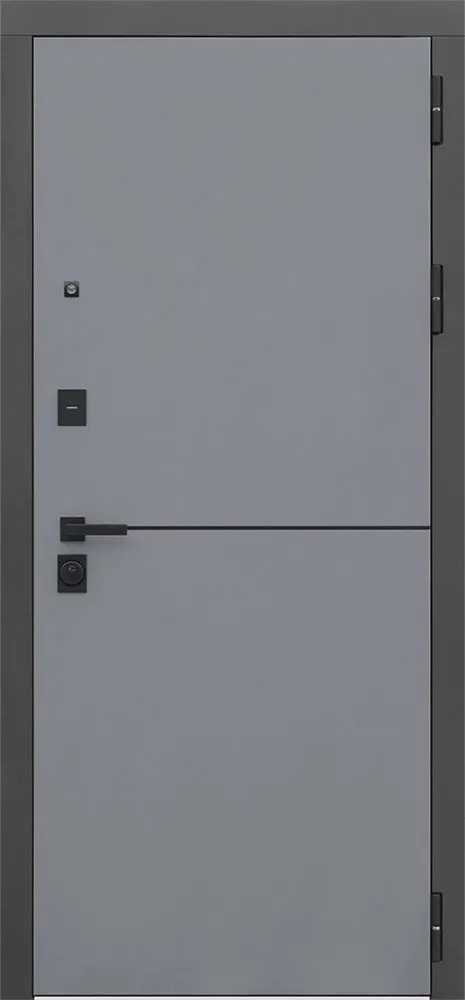 Порошковое покрытие "муар черный". . Экошпонированная панель МДФ 10 мм (цвет «альянс TF 40 IE-X-89U графит»). Декоративный молдинг 10 мм (цвет «черный»). Наличник гладкий МДФ 80 мм (цвет «черный кварц»).
