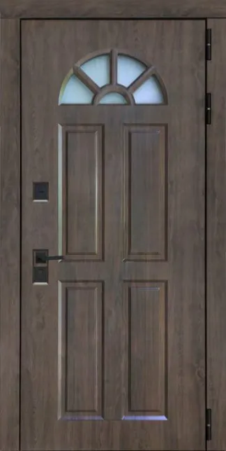 Цвет металла: снаружи черная, изнутри - белая шагрень. Внешняя отделка: МДФ панель 16 мм влагостойкая, винорит Алмон 28. + Декоративные МДФ наличники.