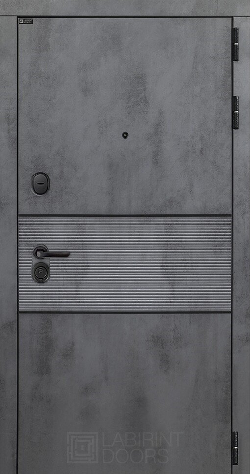 Современная MDF панель 10 мм с наличником, цвет "Бетон темный", вставка черный молдинг Покраска металла Шагрень черная