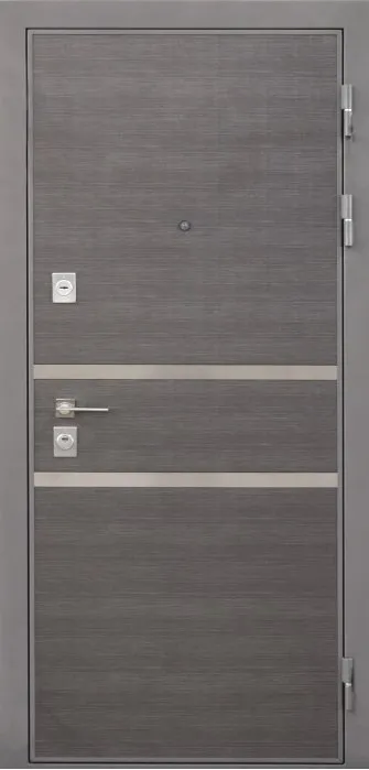 Полимерное покрытие: «Муар», цвет серый с блестками панель МДФ 10 мм ламин.фрезер, пленка цвет «Лен сильвер», ФЛН-270, полосы шлифованная нержавейка